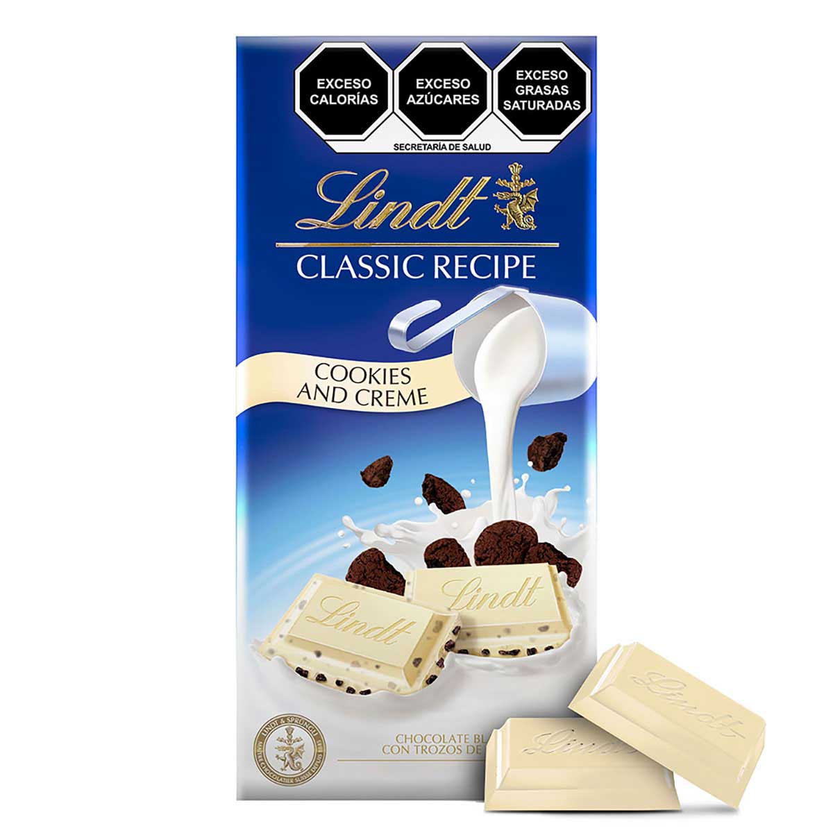 Lindt CLASSIC RECIPE representa toda la tradición de las clásicas recetas originales de chocolate suizo. Disfruta de esta deliciosa barra de chocolate blanco con trozos de galleta. Excelente para compartir o darte un gusto después de un día largo de trabajo. El chocolate Lindt encarna la pasión y artesanía de sus expertos Maestros Chocolateros Suizos desde 1845 ofreciendo una experiencia de chocolate única con un sabor distitivamente suave y delicioso.