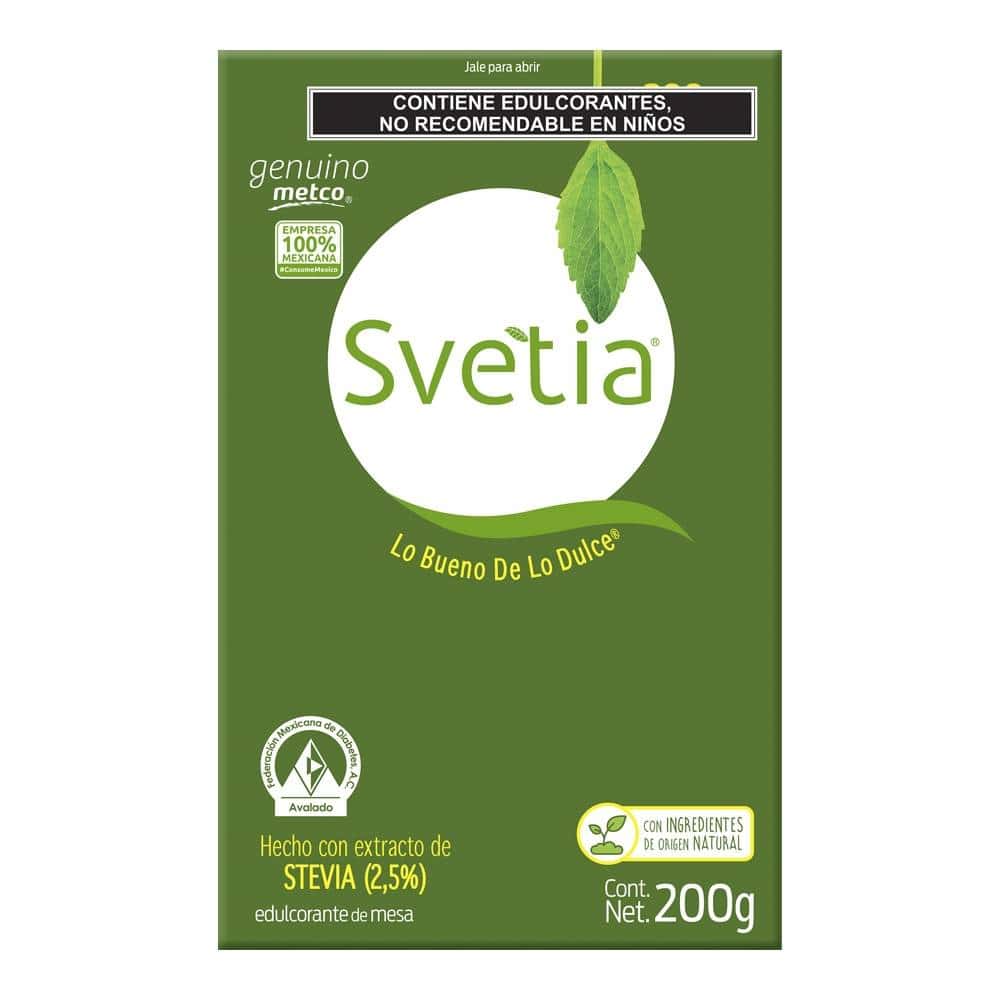 - SVETIA en un endulzante sin calorías 100% natural hecho a base de la planta de Stevia.