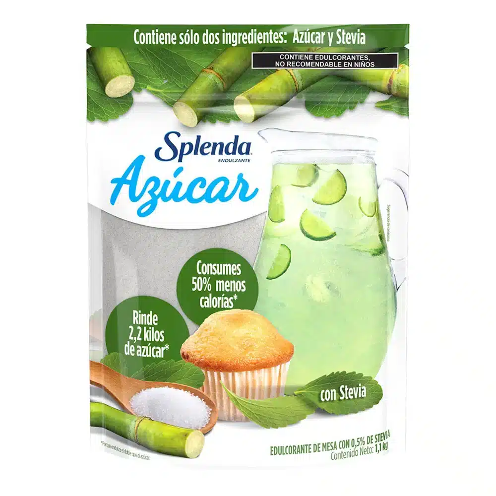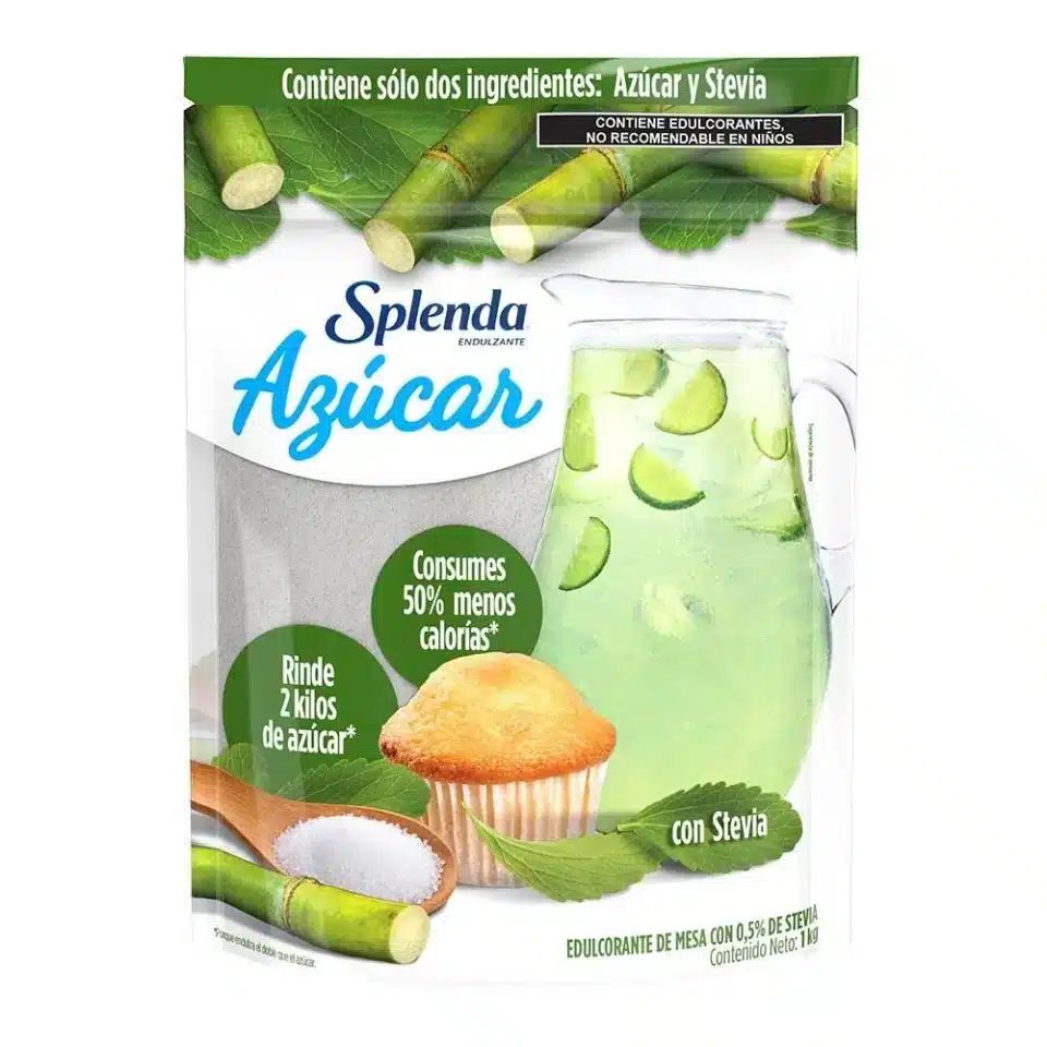 Splenda Azúcar con Stevia, una sorpresa para quien no quiere dejar el sabor del azúcar. Splenda azúcar rinde el doble al contener Stevia natural, es decir, cada cucharada de Splenda Azúcar tiene el doble de dulzor que una de azúcar con la mitad de calorías.