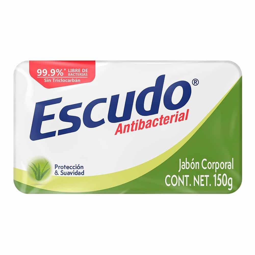 Jabón corporal en barra Escudo Antibacterial con extracto de aloe vera que cuidada e hidrata la piel.