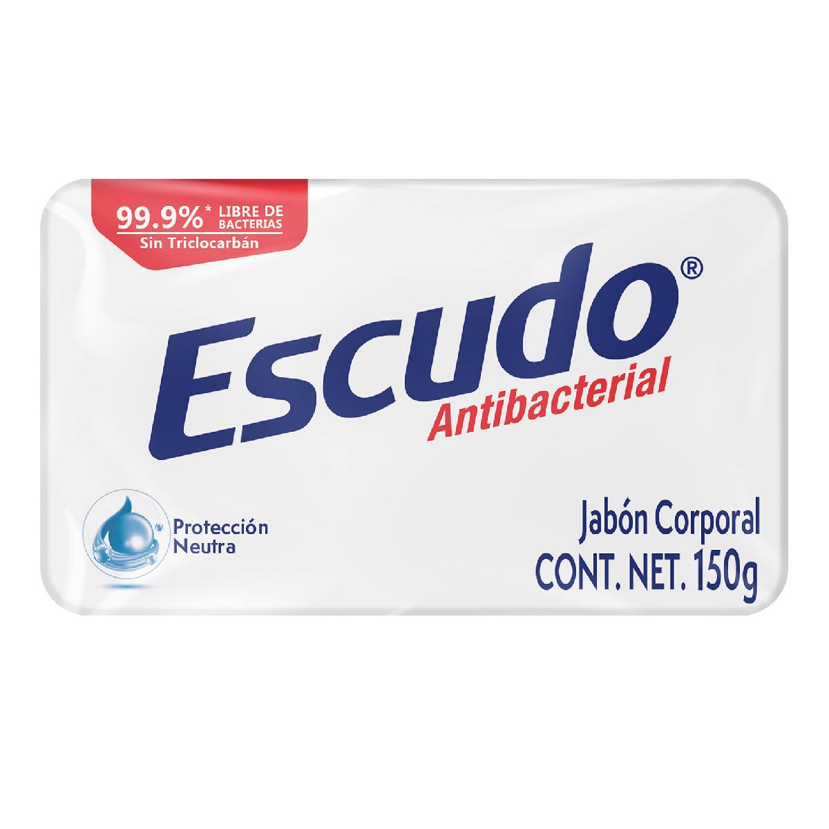 Jabón en barra Escudo Antibacterial neutro para cualquier tipo de piel. Es ideal para toda la familia ya que te protege del 99.9% de las bacterias y evita infecciones. Úsalo para una limpieza profunda de la cabeza a los pies, con la confianza de que su fórmula segura no contiene triclocarbán.