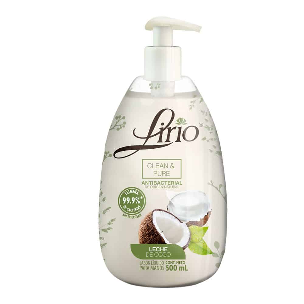 Jabón líquido para manos Lirio clean and pure antibacterial leche de coco 500 ml