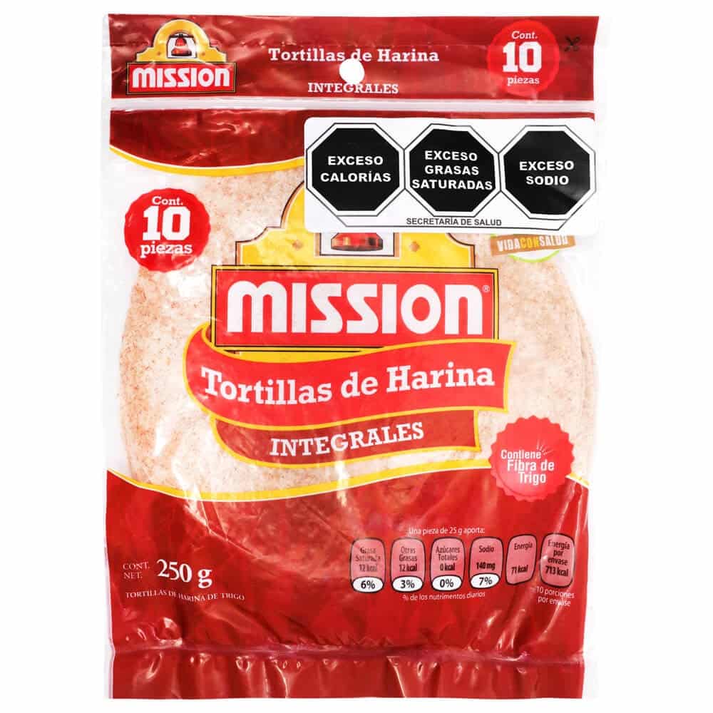 TORTILLA DE HARINA INTEGRAL MISSION 10 PZA 250 GRS